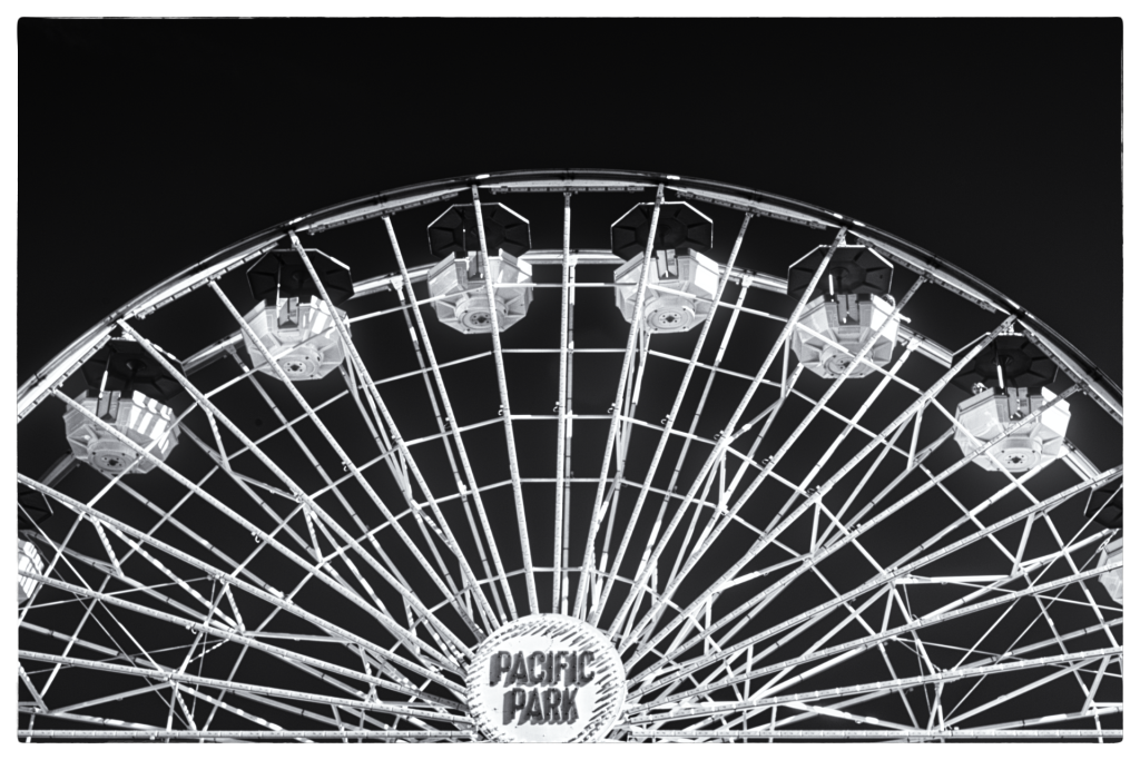 When I photographed this wheel in the middle of the day with an infrared camera, I noticed a woman in one of the top stalls, leaning forward and looking down at the world below. Something about her posture made the moment feel even more human. Maybe she was searching for someone, or maybe she was just taking in the view the way we all do when life slows for a second.